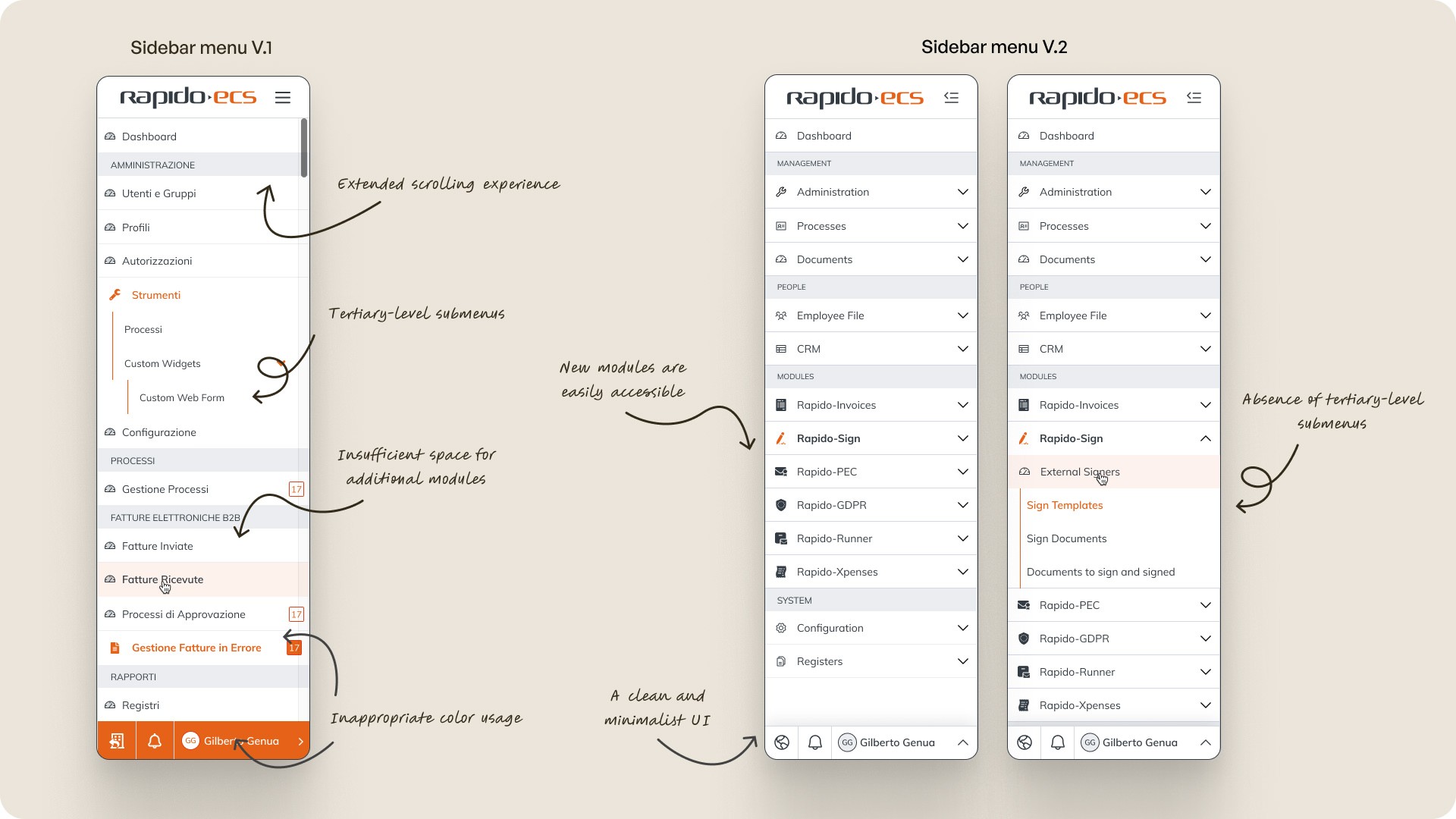 Challenge: Users with multiple modules faced endless sidebar lists. Those with complete suites felt as lost as those with minimal setups. Monthly releases demanded architectural rethinking.